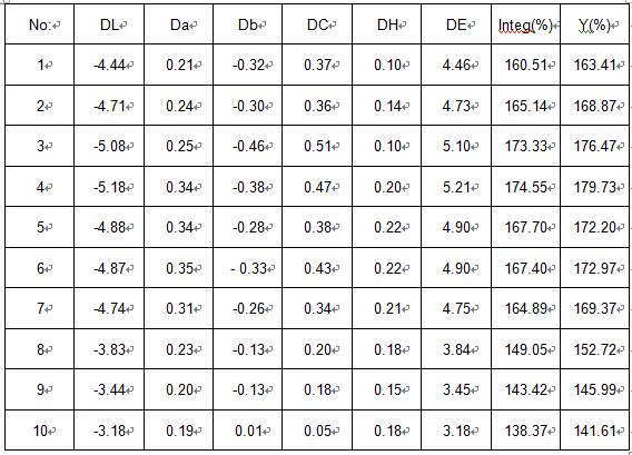 The result shows the concentration of the working fluid must be adjusted before rolling the 8th piece of fabric otherwise the deepening effect will not keep consistently. However, we still need to work on the tests to find when the perfect timing during the production.