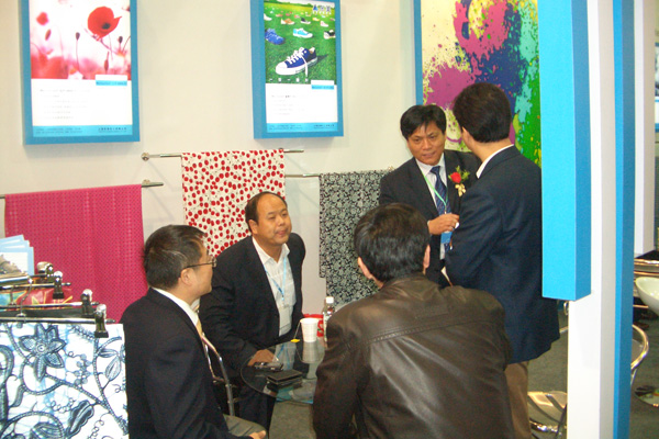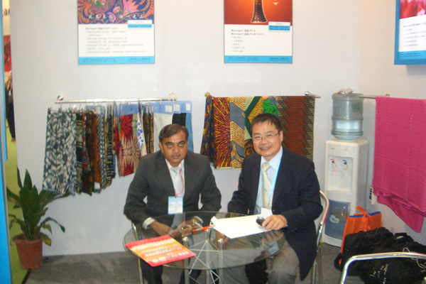 東美化工市場(chǎng)部部分參展人員 東美化工展館布景之一 東美化工展館布景之二 東美化工展館布景之三 東美化工展館布景之四 山東濟(jì)寧如意印染有限公司董事長(zhǎng)孫利民(右二)前來(lái)東美展館指導(dǎo)工作 山東鳳凰印染集團(tuán)總工王福善(右一)、于穎(左一)來(lái)東美展館指導(dǎo)工作 山東三和印染集團(tuán)公司技術(shù)部來(lái)東美公司指導(dǎo)工作 公司董事長(zhǎng)林顯揚(yáng)與印度客人洽談業(yè)務(wù) 公司外貿(mào)部相關(guān)人員與印度客人洽談業(yè)務(wù) 獨(dú)特的布展吸引參展客戶