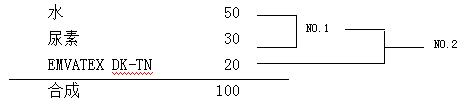 配制原糊時,拔染劑DK-TN加入尿素與水的溶液后,攪拌均勻放置一段時間,使糊料溶脹,助劑充分溶解呈半透明狀。